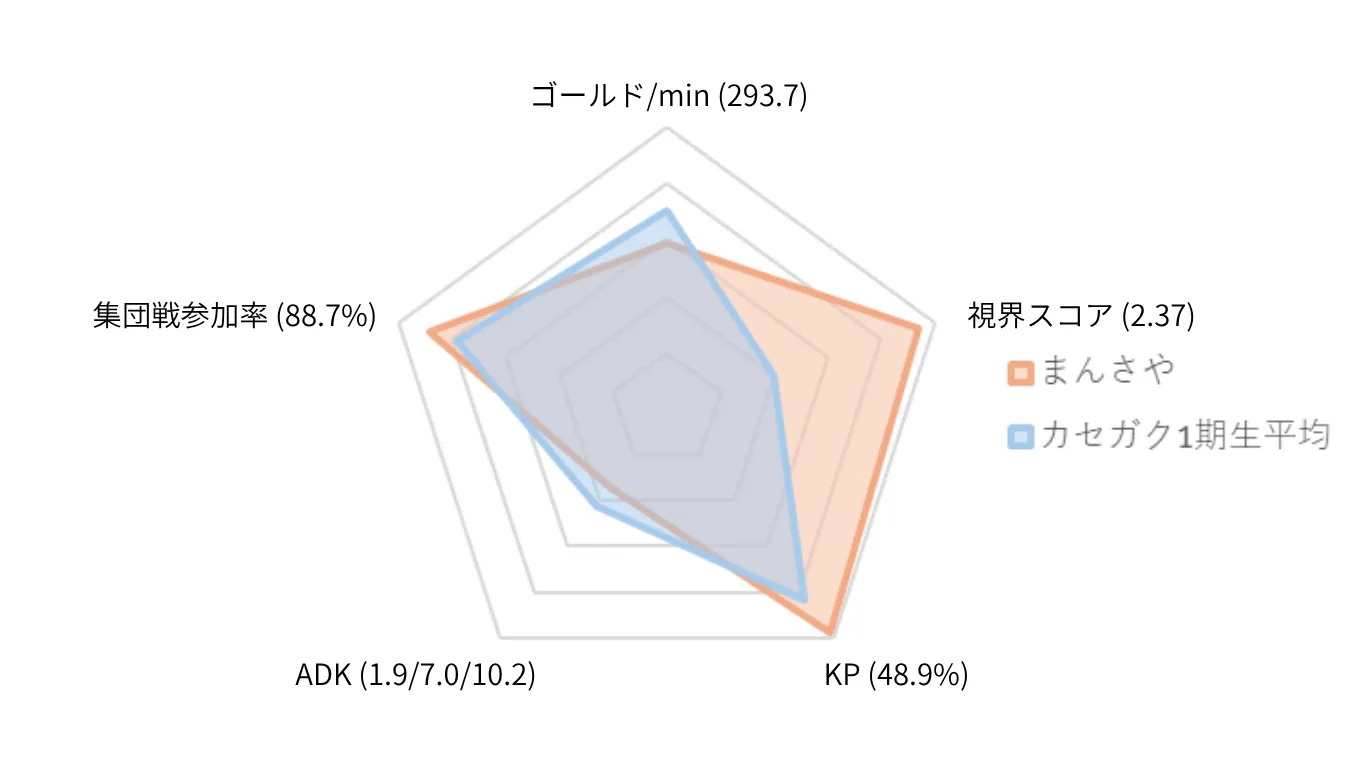 ・視界スコアやキル関与率が非常に高い