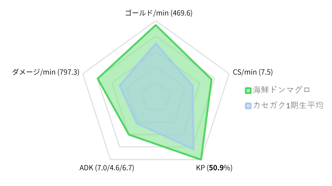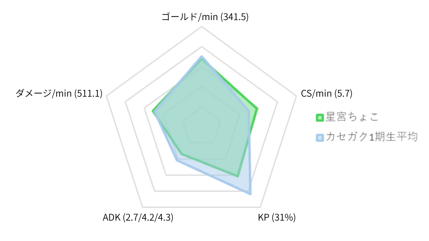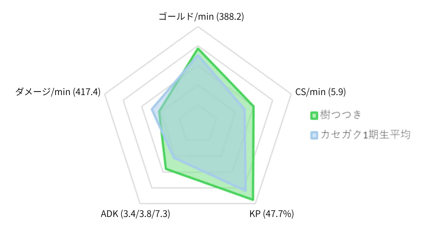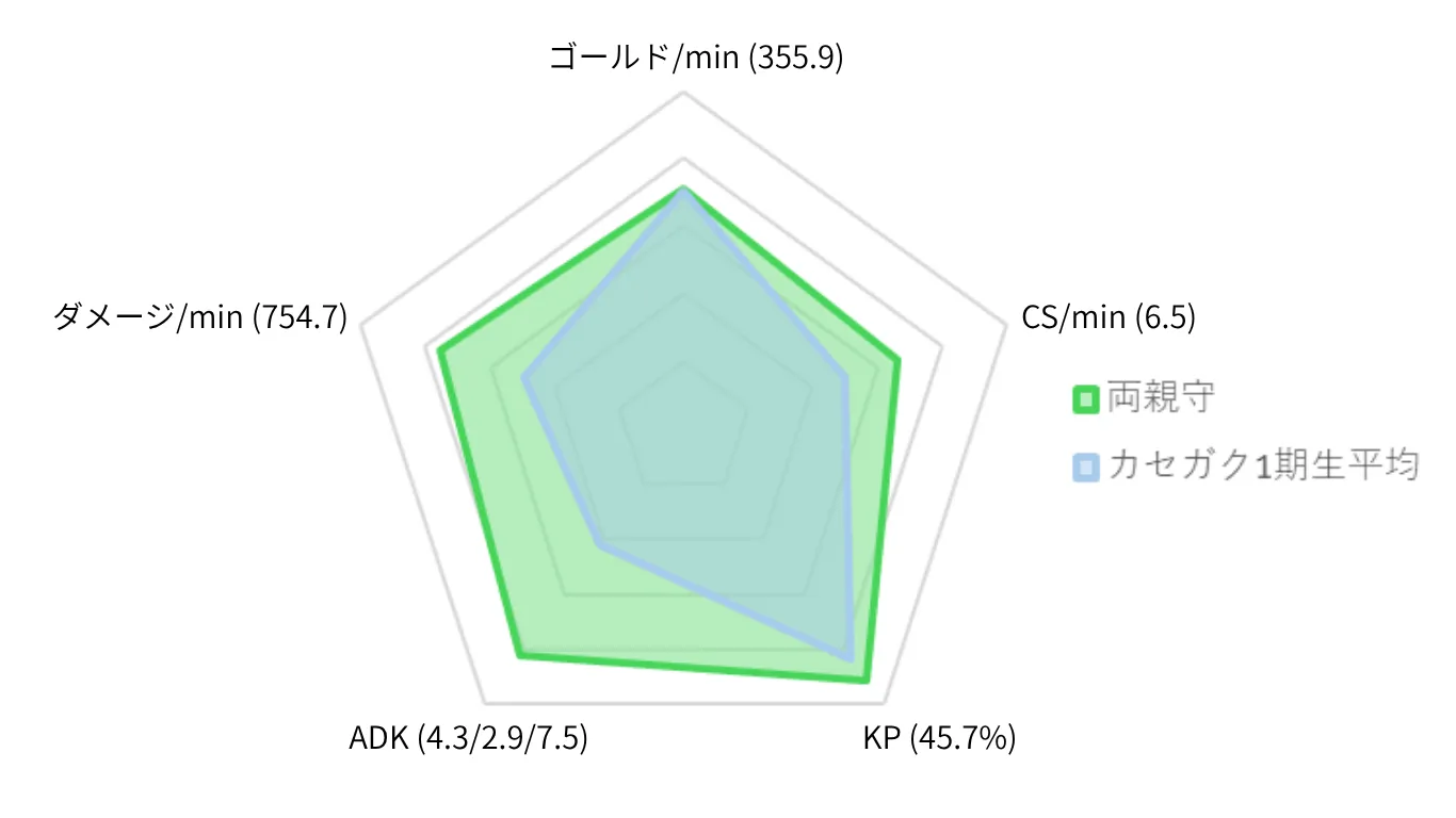 | ・どの面をとっても優秀 ・特にキル関与率が高く、ADCとしてちゃんとダメージを出し、キャリーしている | |